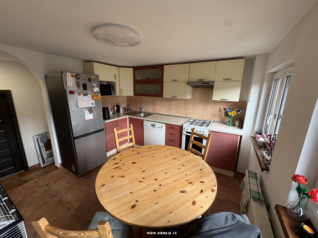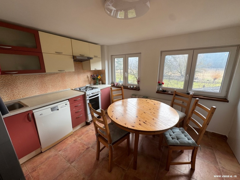 | Vybavení bytu | plně vybavená kuchyňská linka (talíře, skleničky, příbory atd.), lednice s mrazákem, plynový sporák s elektrickou troubou, mikrovlnná trouba, myčka nádobí, pračka, jídelní stůl se čtyřmi židlemi, manželská postel s nočními stolky, vestavěné šatní skříně, rozkládací sedací souprava, krbová kamna atd. | ||