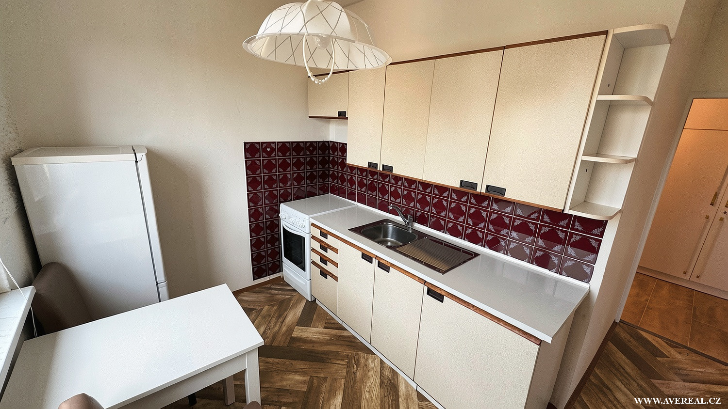 Byt se pronajímá plně zařízený. Součástí vybavení je kuchyňská linka, lednice s mrazákem, plynový sporák s elektrickou troubou, mikrovlnná trouba a jídelní stůl se židlemi. K dispozici je také automatická pračka, sedací souprava, dvě křesla, nábytková stěna, vestavěná skříň v předsíni, žaluzie a osvětlení. Díky tomu je byt připraven k okamžitému nastěhování bez nutnosti dalších investic.